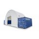 Prístrešok na lodné kontajnery šírka: 10 m, dĺžka: 12 m, výška: 3,6 m, 900g/m2 BIELA Plachtový prístrešok medzi lodné kontajnery s extra silnou priehradovou konštrukciou. Súčasťou je predná stena s vrátami a zadná plná stena. Extrémne odolná PVC plachta gramáže 900 g/m2 so životnosťou až 30 rokov. Určený na celoročné vonkajšie použitie.