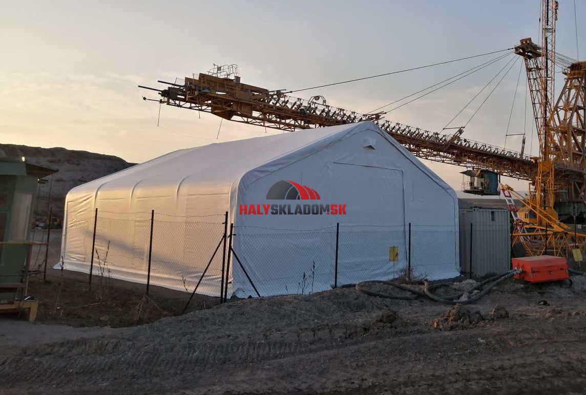 Montovaná plachtová hala s priehradovou konštrukciou a extrémne odolnou PVC plachtou gramáže 900 g/m2 so životnosťou až 30 rokov, biela farba. Hala je určená pre celoročné univerzálne použitie.
