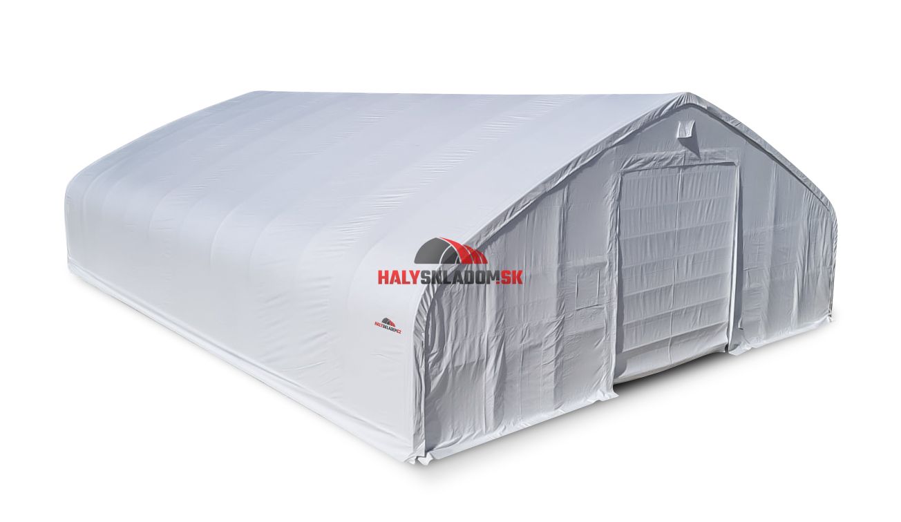 Montovaná plachtová hala s priehradovou konštrukciou a zvýšenou odolnosťou vďaka rozstupu oblúkov len 2,44 m. Extrémne odolná PVC plachta gramáže 900 g/m2 so životnosťou až 30 rokov. Biela farba. Hala je určená pre celoročné univerzálne použitie.