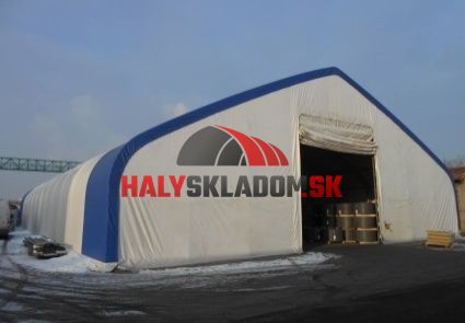 Plachtová hala šírka: 21,35 m, dĺžka: 46,4 m, výška: 8,54 m, PVC 900 g/m2 BIELA