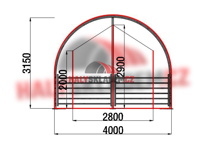 Čelná plachta so zipsovými vrátami na prístrešok pre zvieratá šírky 4 m. PVC plachta gramáže 900 g/m2 so životnosťou až 30 rokov.