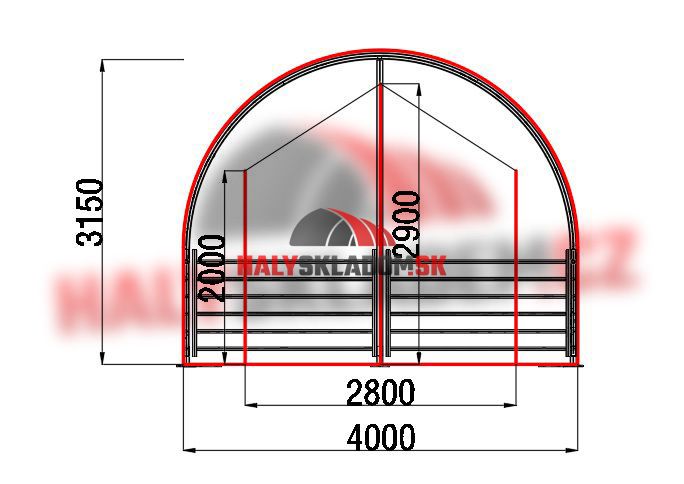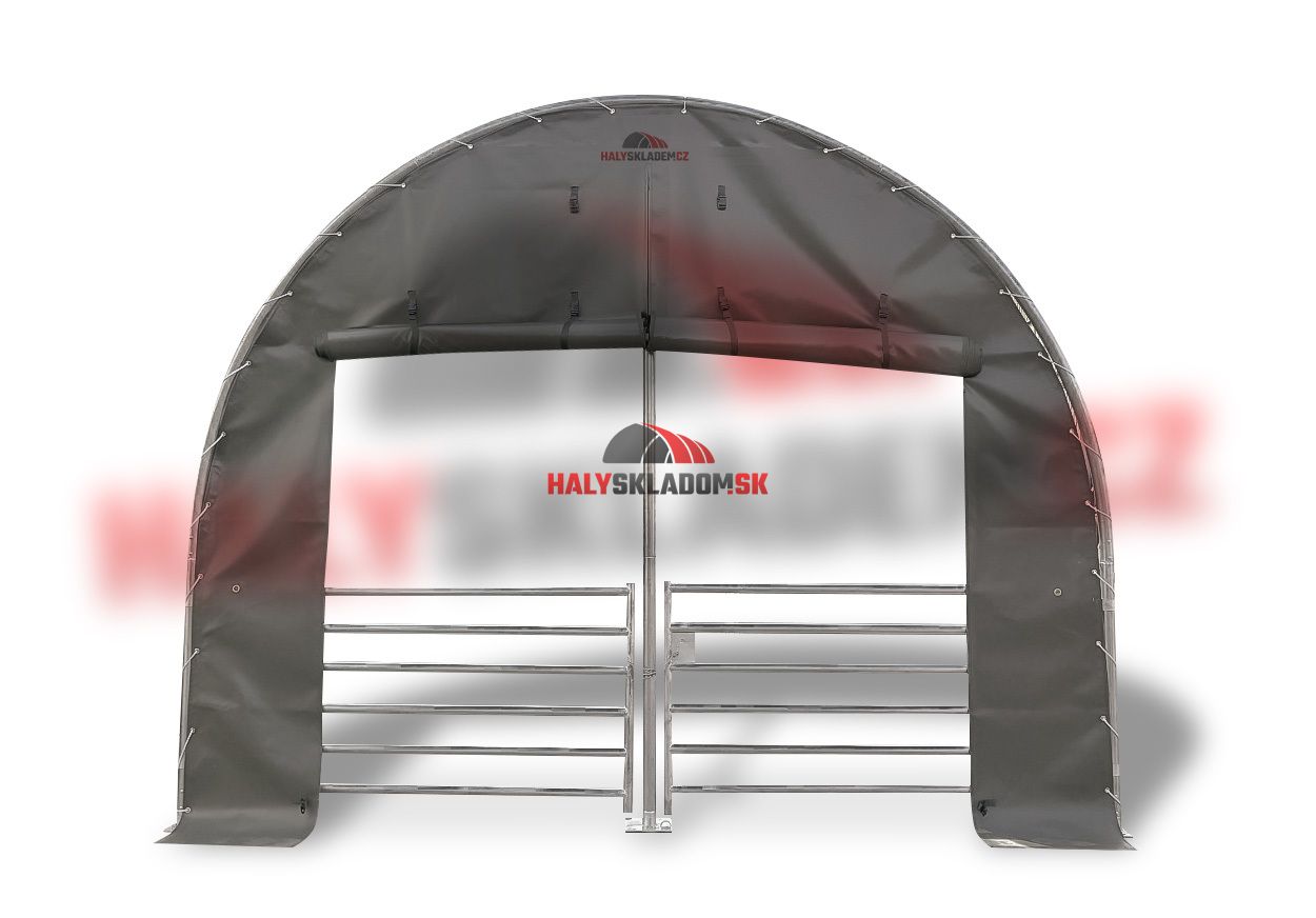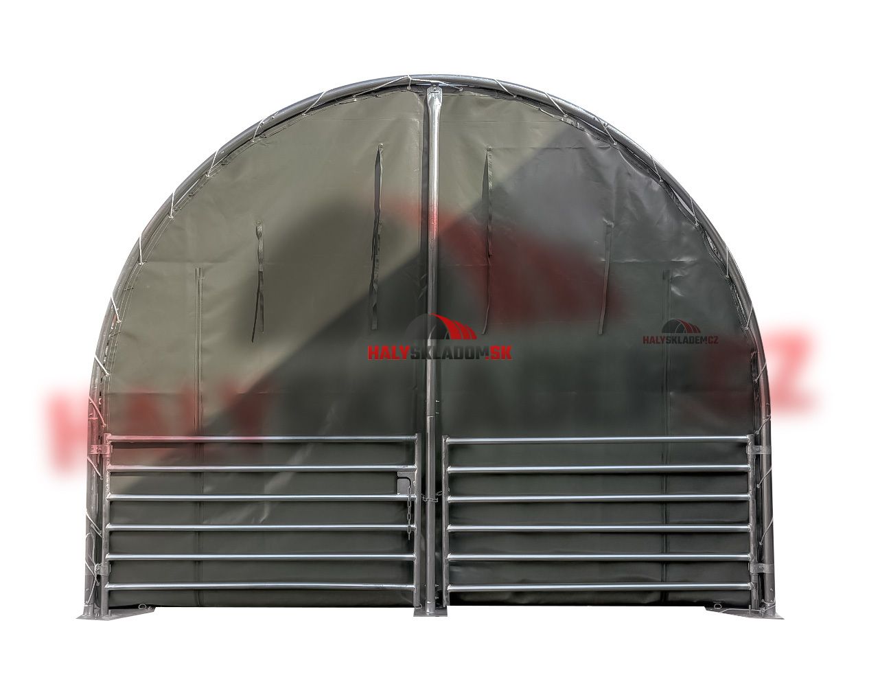 Čelná plachta so zipsovými vrátami na prístrešok pre zvieratá šírky 4 m. PVC plachta gramáže 900 g/m2 so životnosťou až 30 rokov.